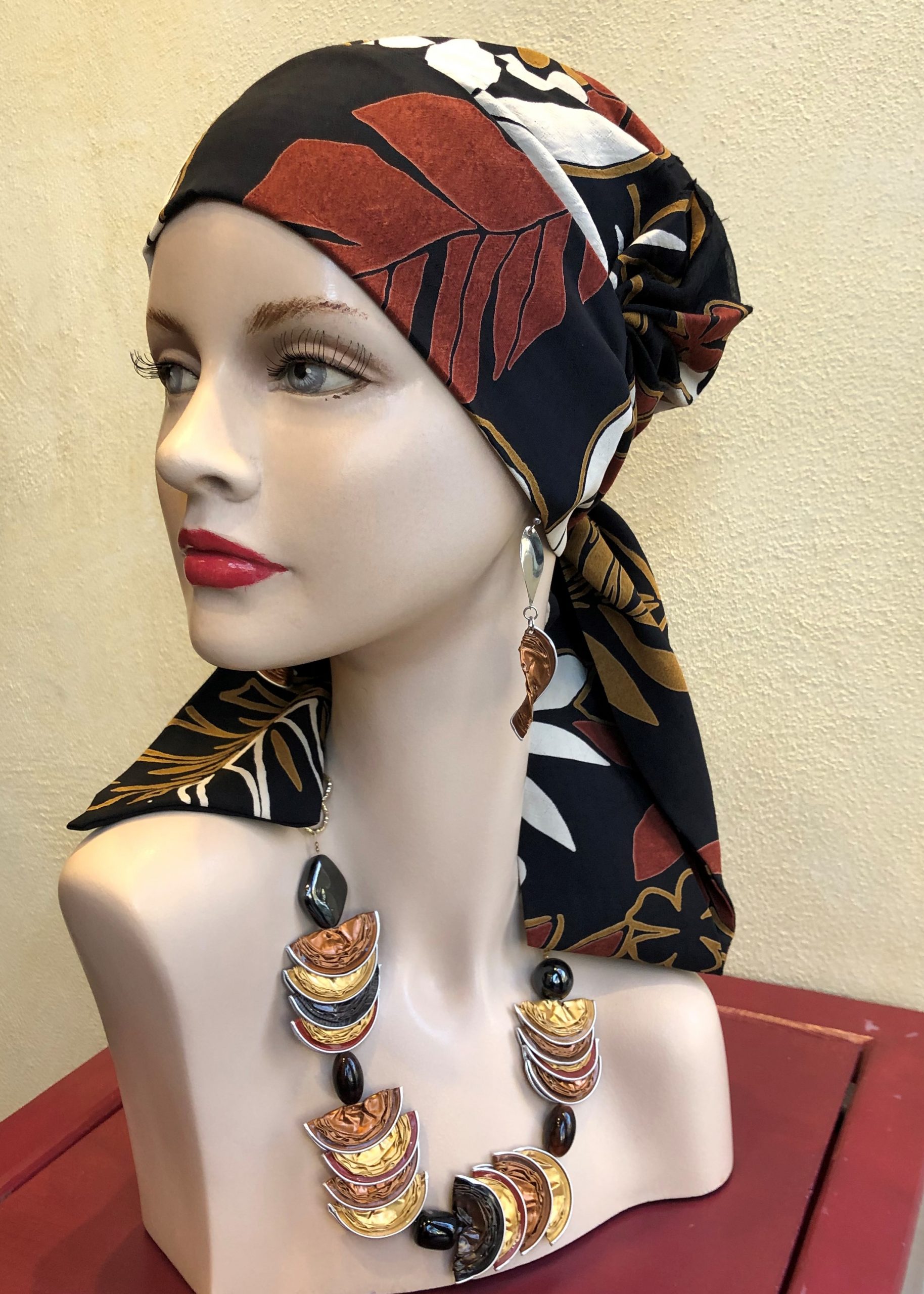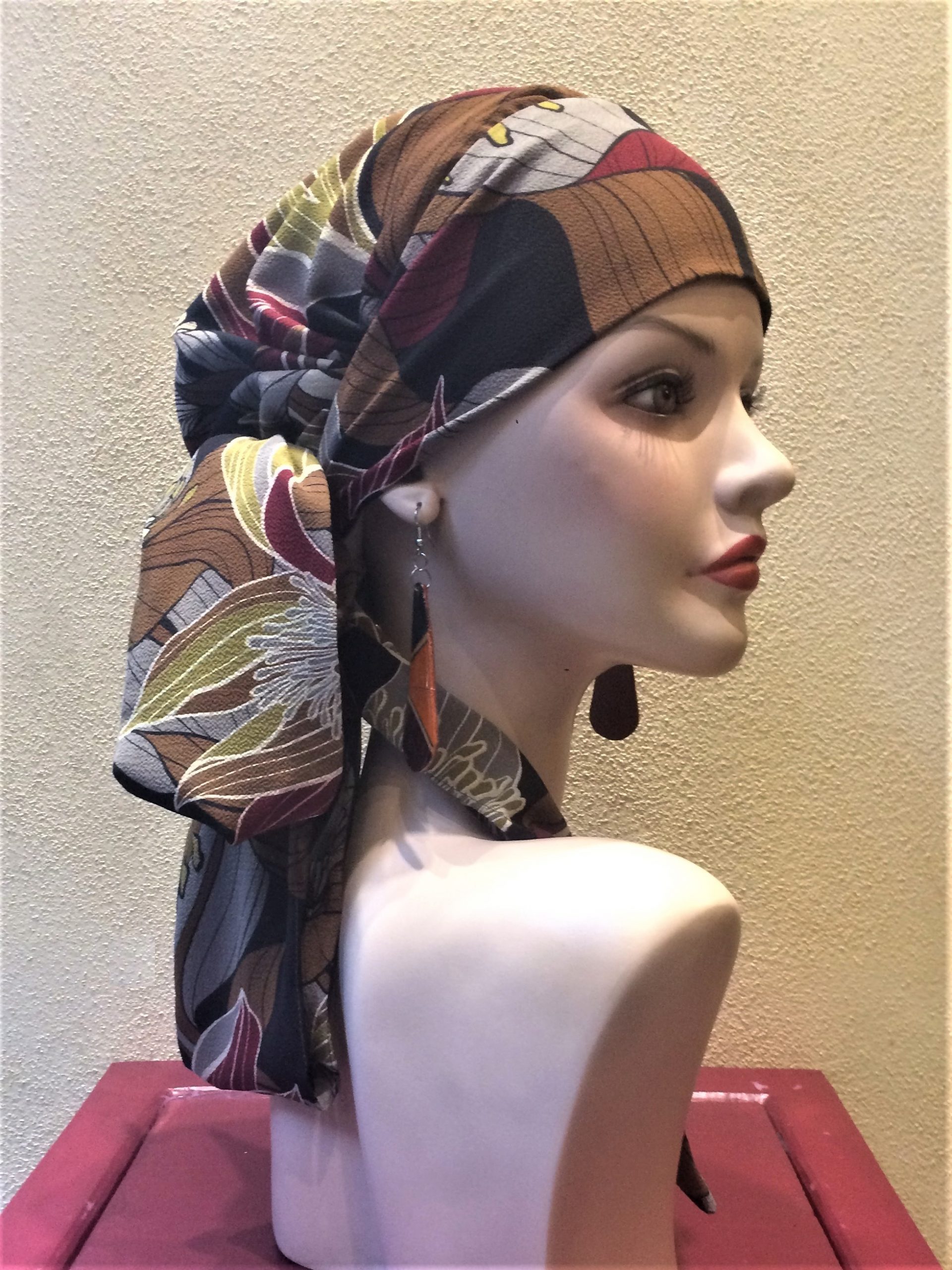 Abbiamo inoltre sviluppato un assortimento artigianale di turbanti confortevoli e sempre alla moda per ogni esigenza femminile. La selezione dei nostri turbanti viene sempre rinnovata con nuovi colori e tessuti.